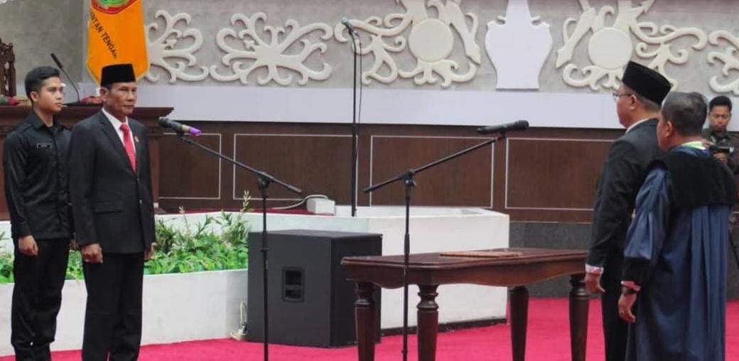 Keterangan Foto : Ketua DPRD Prov. Kalteng, Arton S Dohong saat melantik Amonius Tuyum sebagai Anggota DPRD Kalimantan Tengah menggantikan Jimmy Carter dari Partai Demokrat untuk Daerah Pemilihan (Dapil) Kalimantan Tengah 4