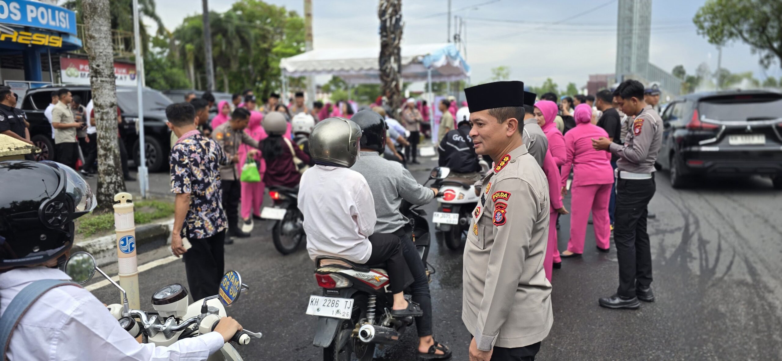 “Hari ini, kami berbagi keberkahan dengan membagikan ratusan paket takjil atau kudapan untuk masyarakat dan pengendara motor,” terang Kabidhumas.