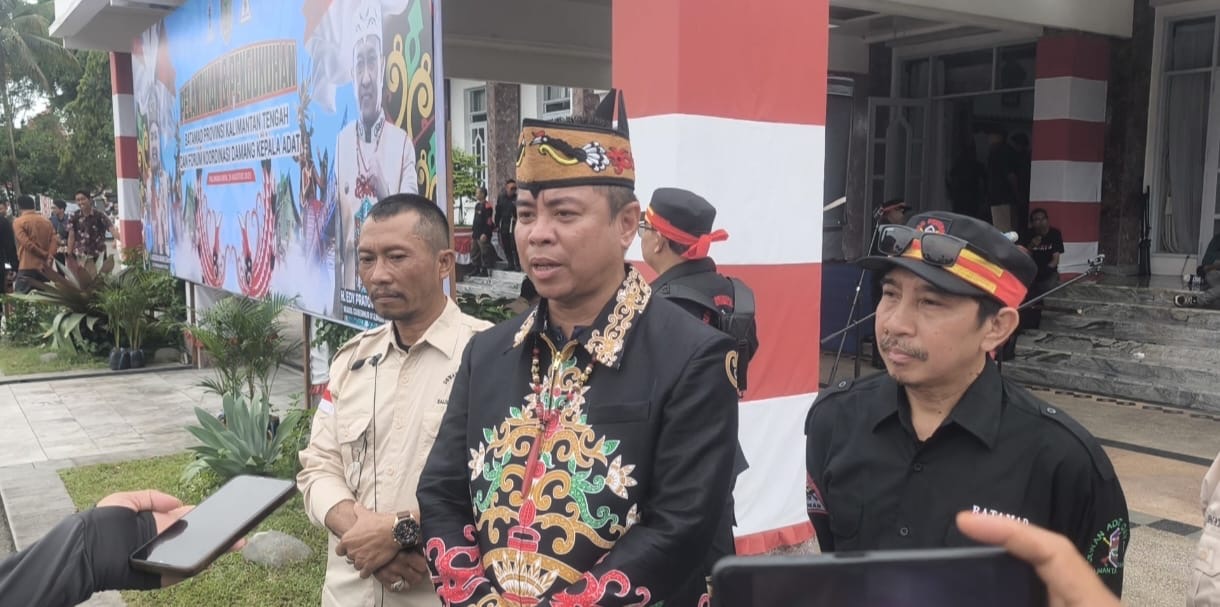 GlobalKalteng.com || PALANGKA RAYA || Momentum bersejarah kembali terukir bagi masyarakat adat Dayak Kalimantan Tengah. Dewan Adat Dayak (DAD) Provinsi Kalteng resmi melantik dan mengukuhkan pengurus Barisan Pertahanan Masyarakat Adat Dayak (Batamad) serta Forum Koordinasi Damang Kepala Adat, Minggu (24/08/2025). Prosesi sakral ini digelar di halaman Istana Isen Mulang (IIM), Rumah Jabatan Gubernur Prov Kalteng, Palangka Raya.