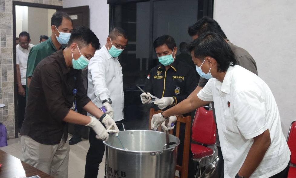 Proses pemusnahan dilakukan dengan melarutkan sabu ke dalam air panas yang dicampur cairan pelarut hingga seluruhnya hancur.