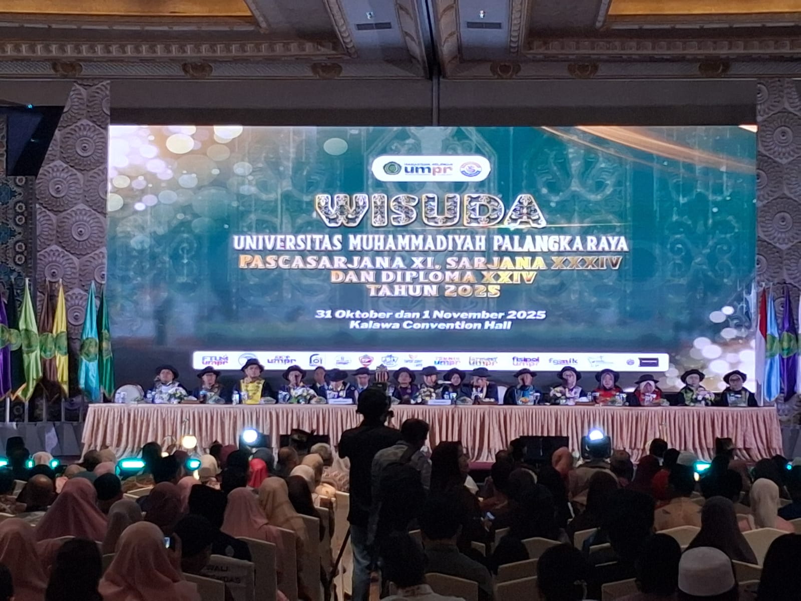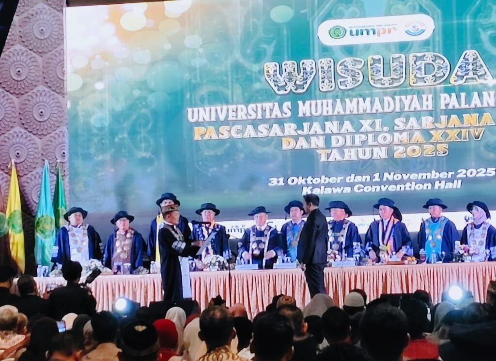 GLOBALKALTENG.COM, PALANGKA RAYA – Universitas Muhammadiyah Palangka Raya (UMPR) mencatatkan sejarah dengan mewisuda 2.431 mahasiswa dari berbagai program studi, mulai Diploma, Sarjana, hingga Pascasarjana, pada tahun akademik 2024/2025. Acara wisuda yang meriah ini digelar di Kalawa Convention Hall, Palangka Raya, pada Jumat (31/10/2025), dihadiri oleh tokoh-tokoh penting, termasuk Gubernur Kalimantan Tengah, Agustiar Sabran, dan Kepala Staf Kepresidenan Indonesia, Muhammad Qodari.
